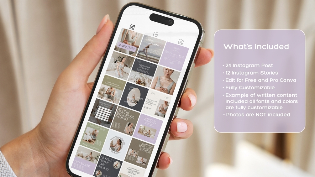 Welcome to our Wellness Studio Templates. Featuring 36 designs with a minimalist and modern style, perfect for both studio or personal brand use. Elevate your online presence effortlessly and stylishly. Fully customizable in Canva, you can adjust colors and typography to suit your preferences. Please note that photos are not included.